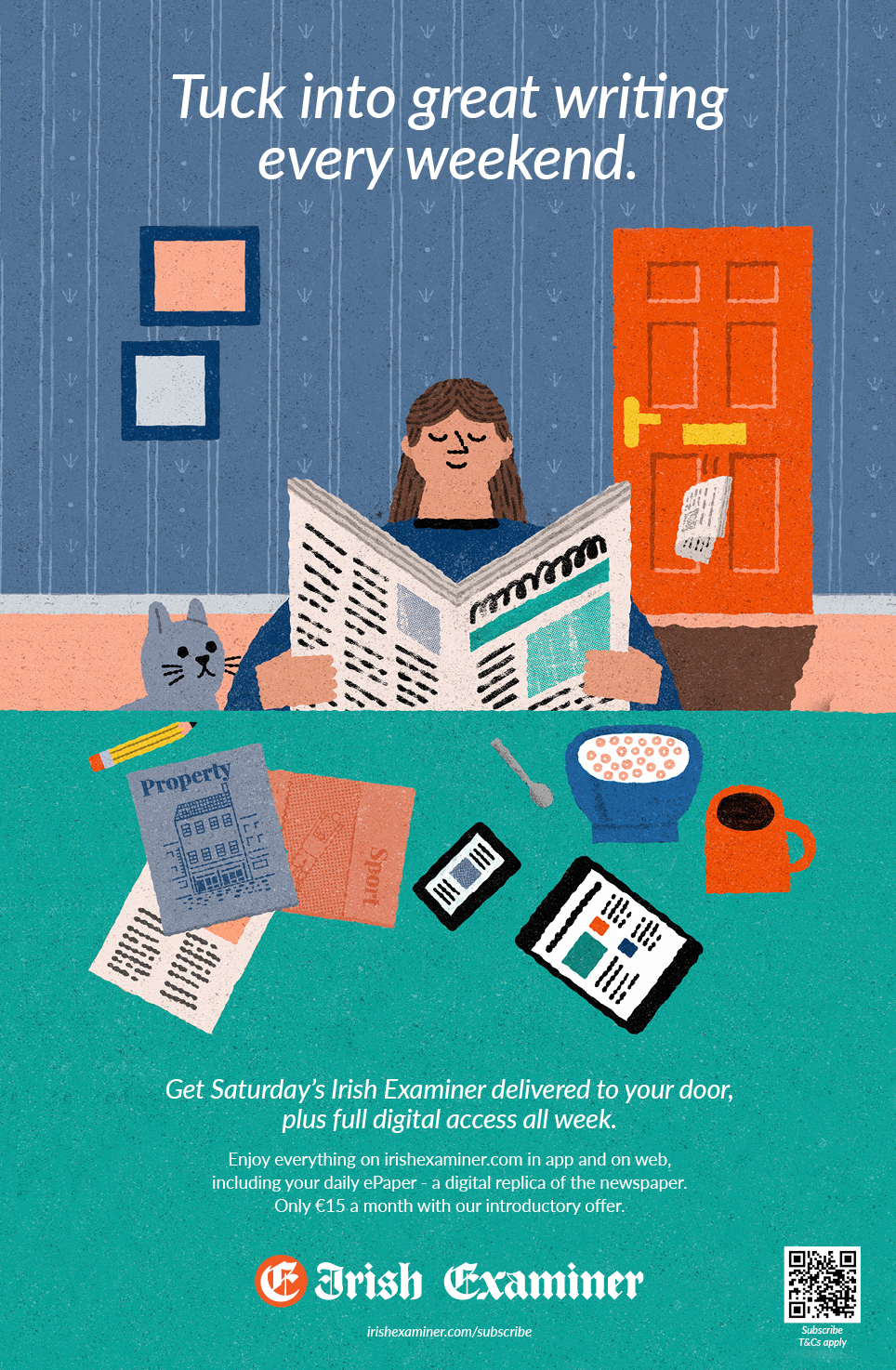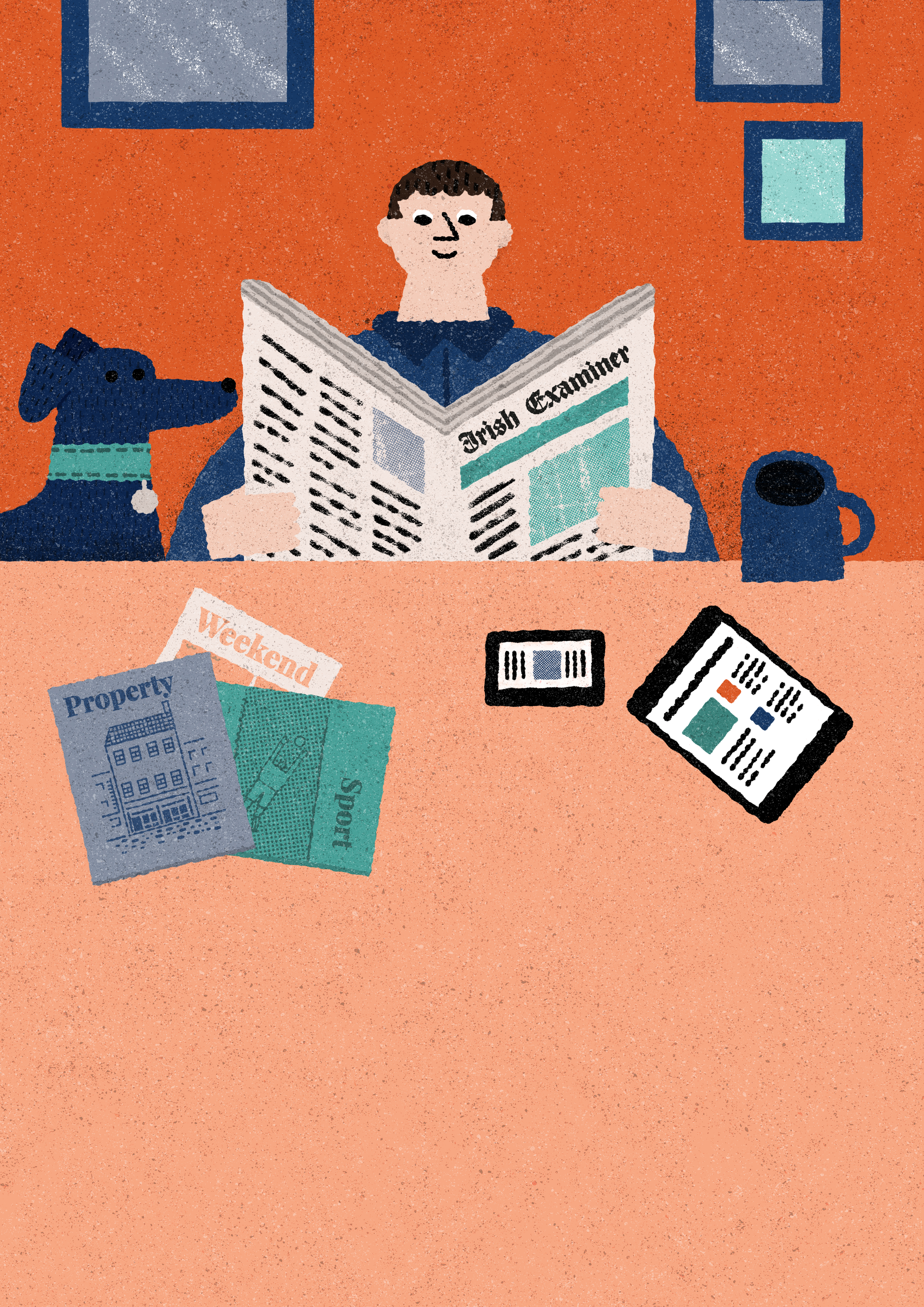 We developed a campaign to transition the Irish Examiner’s print audience to its new digital and hybrid subscriptions. To clearly communicate each package’s value, illustrator Conor Nolan created a distinctive style of artwork showing readers relaxed at home, engaging with the paper in different formats. These intuitive illustrations—deployed across ads, landing pages, and banners—provided an immediate, at-a-glance understanding of the options, simplifying the choice for subscribers and driving sign-ups.