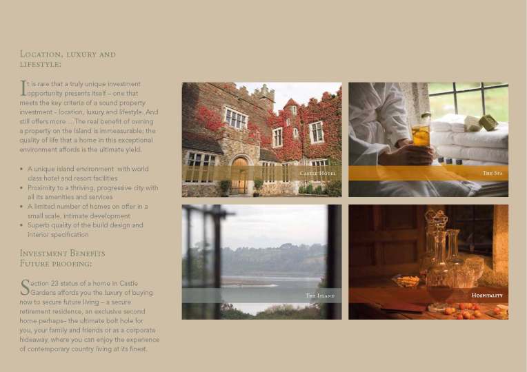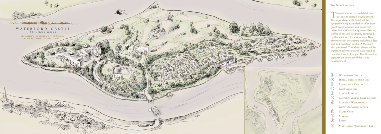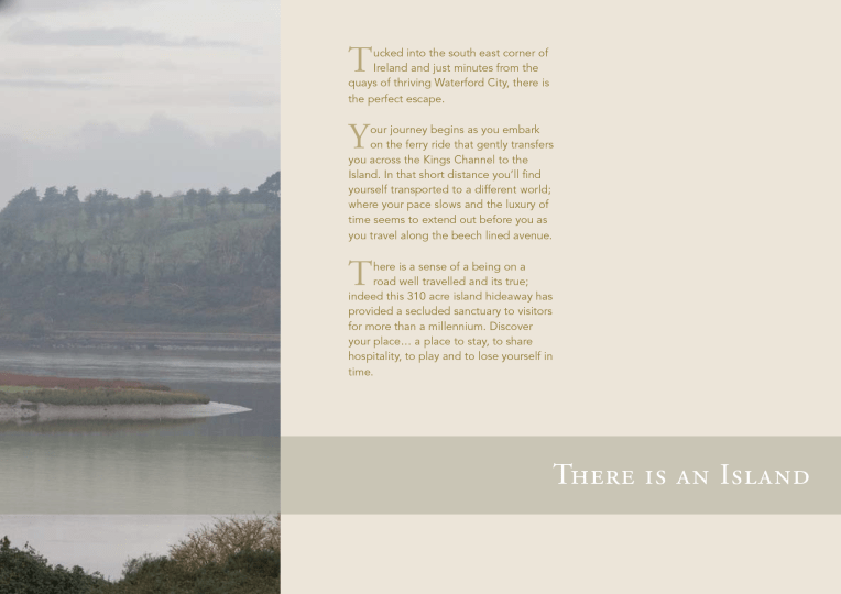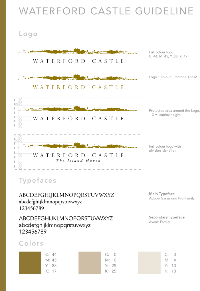 To position Waterford Castle as a premier private island retreat, we created a brand identity steeped in heritage and natural elegance. This established a cohesive visual language, from the noble-inspired logo to a sophisticated brochure where stunning photography takes center stage, promising guests a timeless escape of understated luxury.