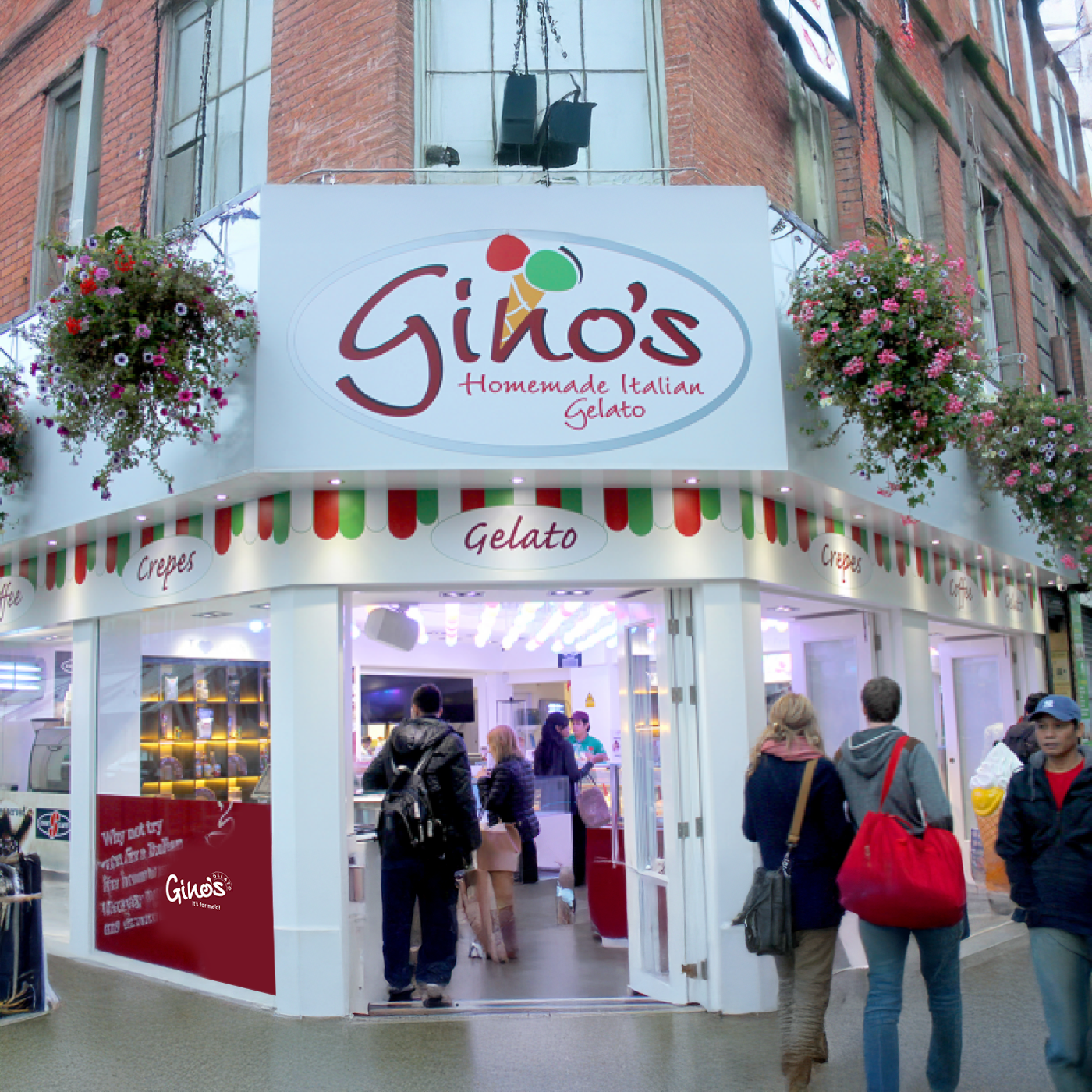 To create a robust visual identity for Ginos Gelato—a brand that combines authentic Italian methods with the quality of Irish ingredients. The challenge was to develop a versatile logo and color palette that would reinforce a strong, consistent brand across all physical and digital channels, from packaging to online at ginosgelato.com.