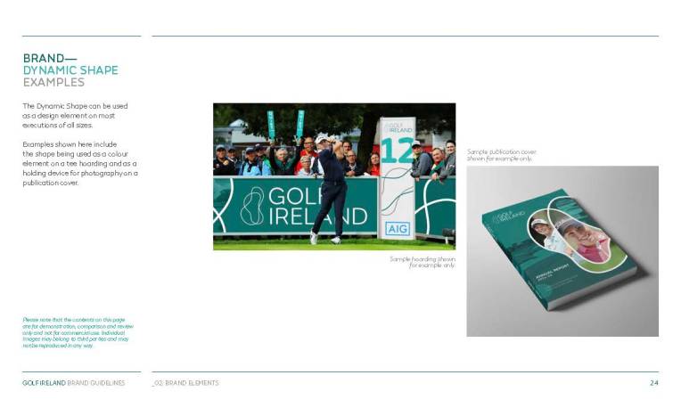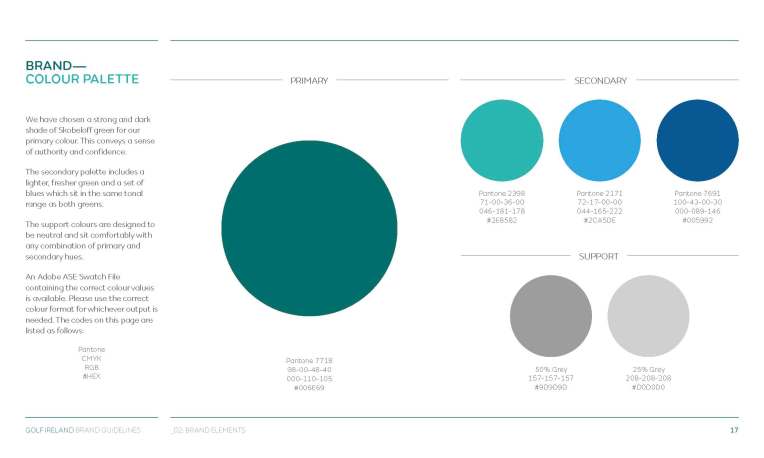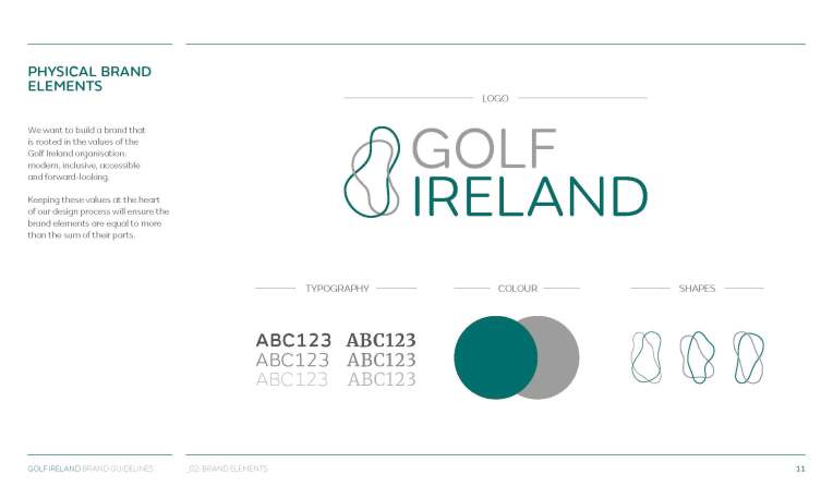This identity was designed to give visual form to Golf Ireland’s purpose: to be a modern, inclusive, and cohesive governing body. The central dynamic shape—symbolising two greens uniting—visually communicates the core principle that “we are stronger together.” This cohesive system, reflecting values of accessibility and progress, was rolled out as a unified brand language across all touchpoints, including the website, app, tournament merchandise, and event signage.