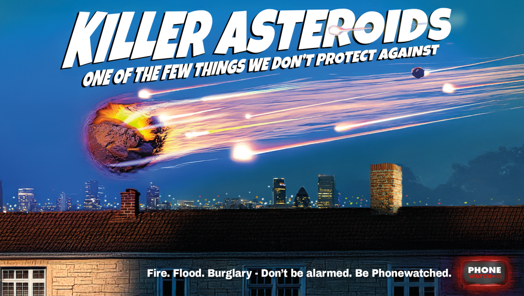 This campaign positions PhoneWatch as the ultimate solution for home safety by leveraging a strategy of contrast and irrational relief. Instead of using generic fear-based messaging, we demonstrate the system’s comprehensive protection by humorously acknowledging the only threats it can’t stop: absurd, cinematic disasters like alien invasions and giant asteroids.