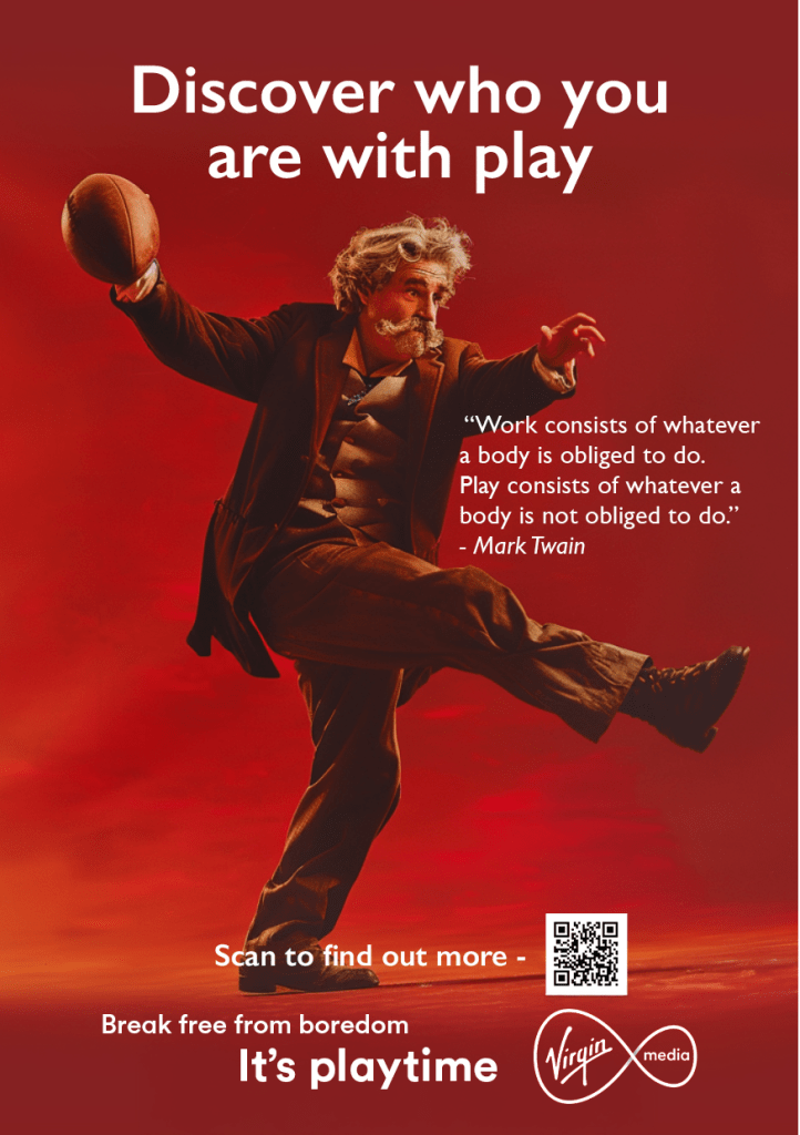 The campaign showed renowned professionals at play, reinforcing that it’s a fundamental human need. This narrative framed Virgin’s high-speed broadband as an enabler of these meaningful, joyful moments.